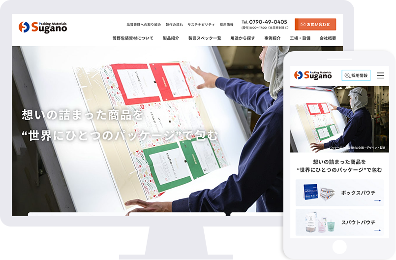 食品や化粧品などのパッケージの企画・デザインからフィルムの製造、製袋、品質管理、物流まで、包装にまつわるサービスをワンストップで行っている、菅野包装資材様のコーポレートサイトをリニューアルいたしました。
