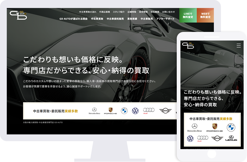 ”スタイリッシュで高級感のあるデザイン”と”必要な情報が凝縮されたページ設計”で、新規顧客からの査定依頼の増加を後押し