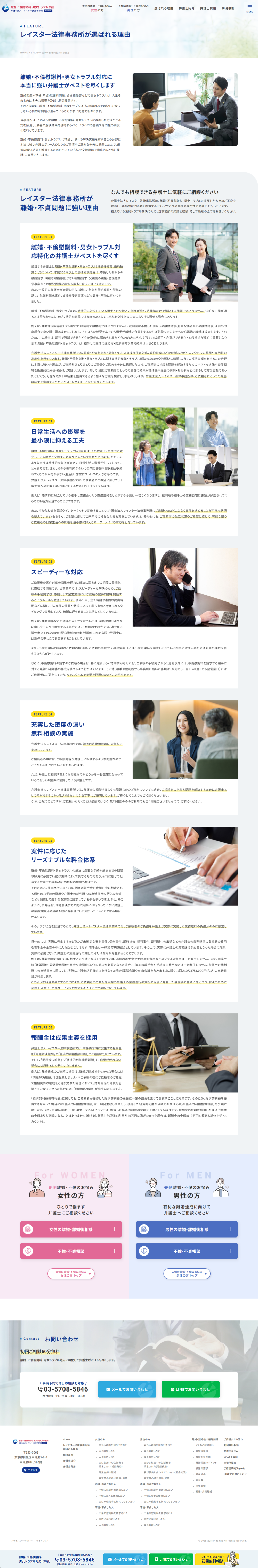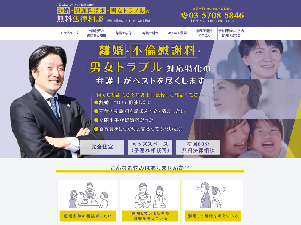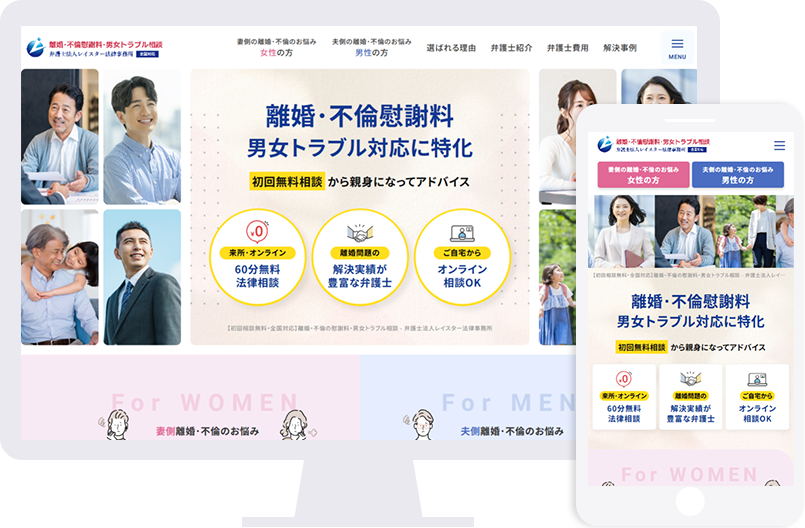 離婚・不倫慰謝料・男女トラブルに精通した弁護士が、最適な交渉戦略で最善の解決へと導く、レイスター法律事務所様のサービスサイトをリニューアルいたしました。